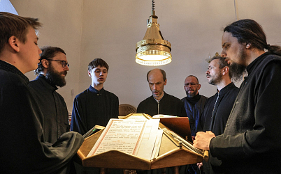 Богослужебные песнопения византийским распевом исполнил хор афонского подворья.