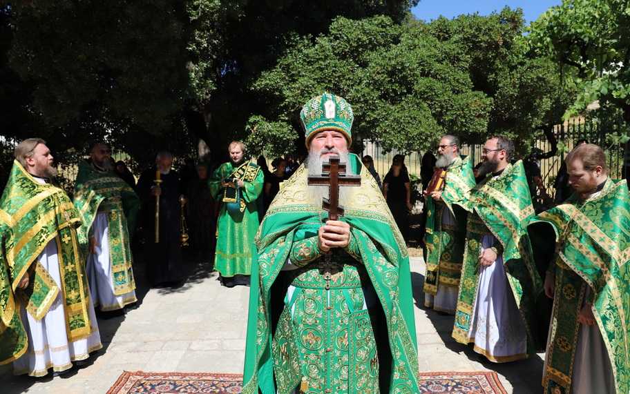 После отпуста Божественной литургии был совершен крестный ход к главной святыне хевронского подворья Миссии – Мамврийскому дубу, где архимандрит Александр прочел праздничное Евангельское зачало и окропил богомольцев освященной водой. Затем были возглашены уставные многолетия.