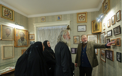 В завершение митрополит Феогност и игумения Иулиания с сестрами были приглашены в Музей Памяти пострадавших в Бутове при храме Новомучеников и исповедников Российских, где посетили выставку «Забытые имена великой войны». Экскурсию провел директор музея Игорь Владимирович Гарькавый. В этом музее до конца года можно посетить новую временную выставку «Забытые герои Великой войны».