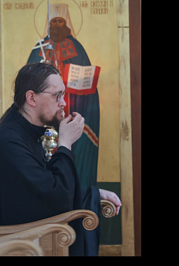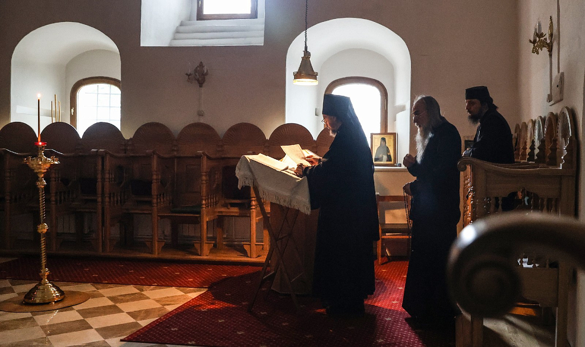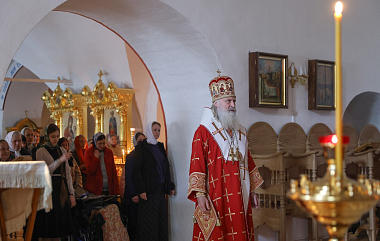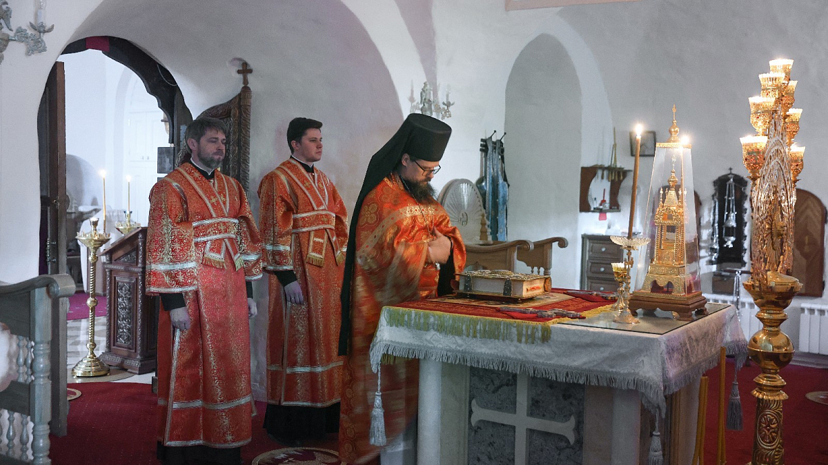 По окончании Литургии митрополит Феогност поклонился честным мощам преподобного Аристоклия, старца Афонского и Московского.