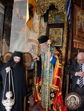 В этот же день Архиепископ Хризостом посетил расположенную в Карее келлию Св. Прав. Анны, после чего отправился в древний монастырь Иверон, где был торжественно встречен игуменом и братией обители.