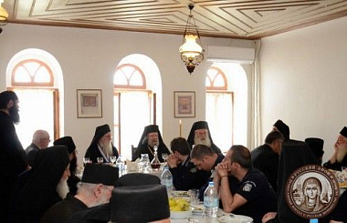 После этого продолжилось общение Предстоятеля Кипрской Церкви и членов делегации с членами Священного Кинота во время официального обеда, в завершение которого Архиепископ Хризостом вручил всем представителям афонских монастырей памятные подарки.