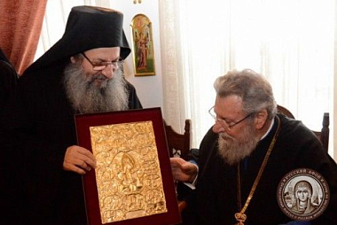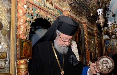 В паломнической поездке Предстоятеля Кипрской Церкви сопровождал глава Синодальной комиссии по образованию митрополит Пафский Георгий (Папахризостому), ипертим и экзарх Арсинои и Ромеи.