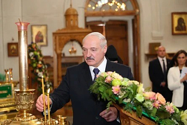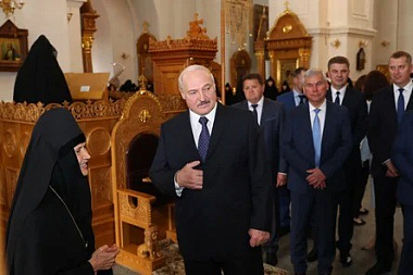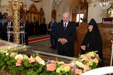 В Крестовоздвиженском соборе глава государства зажег свечу, поклонился воссозданному кресту и мощам преподобной Евфросинии Полоцкой. Работы по воссозданию раки святой Евфросинии Полоцкой были проведены в 2003-2007 годах по инициативе Белорусского экзархата и благодаря помощи со стороны главы государства.