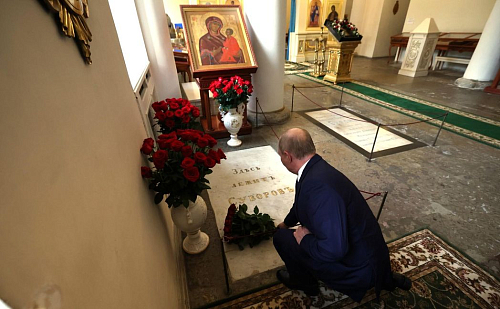 В нижнем храме-усыпальнице Благовещенской церкви Президент России и Предстоятель Русской Православной Церкви возложили цветы на могилу великого полководца А.В. Суворова.