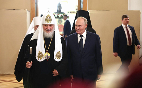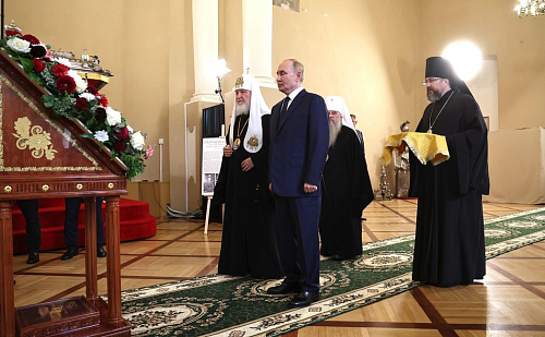 Главу государства сопровождал Святейший Патриарх Московский и всея Руси Кирилл.