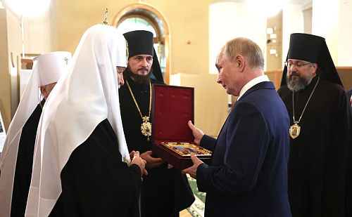 В.В. Путин: Спасибо Вам большое за этот образ и за все, что Вы делаете для русского народа, да и для других народов страны — укрепляете нашу веру, наши фундаментальные ценности.