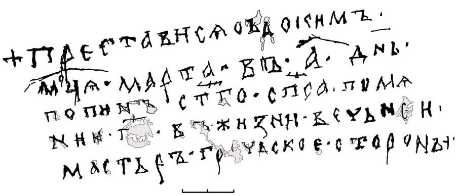 «+Преставился (умер) Авдоким месяца марта в первый день, попин Святого Спаса. Помяни, Господи, в жизни вечной. Мастер греческой стороны».
