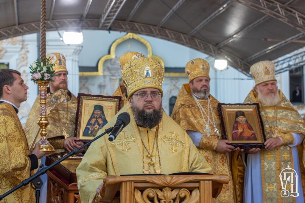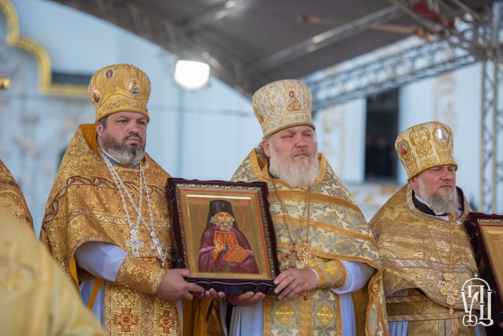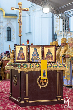После малого входа состоялось прославление трех новых святых Украинской Православной Церкви. Во исполнение решения Синода Украинской Православной Церкви от 3 апреля 2019 года как местночтимые святые Киевской епархии с внесением в Собор святых Киевской духовной академии прославлены: