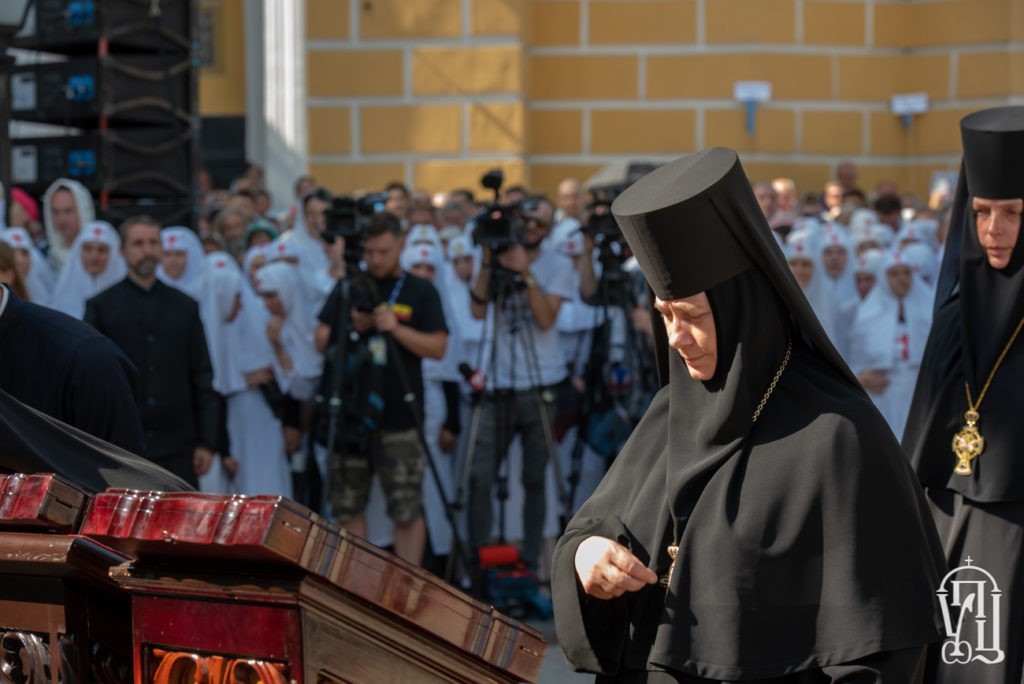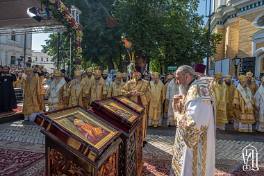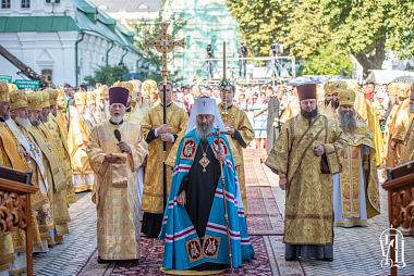 Накануне Блаженнейший митрополит Онуфрий возглавил молебен у памятника Крестителю Руси на Владимирской горке в Киеве и многотысячный крестный ход с чудотворными святынями в Киево-Печерскую лавру, где в сослужении представителей Поместных Церквей совершил всенощное бдение.