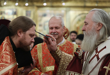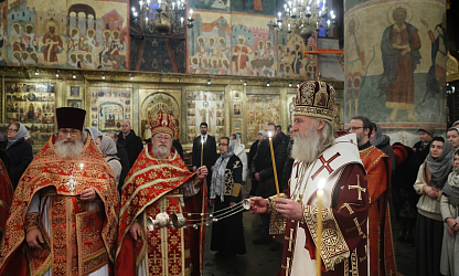 Его Высокопреосвященству сослужили ризничий Патриаршего Успенского собора и храмов Московского Кремля, настоятель Патриаршего подворья храмов в Зарядье г. Москвы протоиерей Вячеслав Шестаков, духовенство города Москвы.