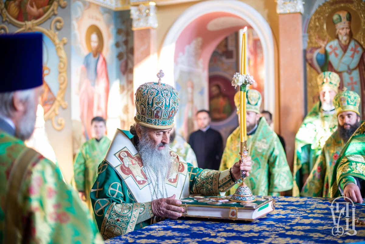 Предстоятелю Украинской Православной Церкви сослужили: наместник Лавры митрополит Вышгородский и Чернобыльский Павел, управляющий делами Украинской Православной Церкви митрополит Бориспольский и Броварской Антоний, митрополит Львовский и Галицкий Филарет, митрополит Нежинский и Прилукский Климент, митрополит Винницкий и Барский Варсонофий, архиепископ Конотопский и Глуховский Роман, архиепископ Фастовский Дамиан, епископ Барышевский Виктор, епископ Белогородский Сильвестр, епископ Петропавловский Андрей, епископ Бородянский Марк, епископ Бышевский Кирилл, духовенство обители и гости праздника в священном сане.