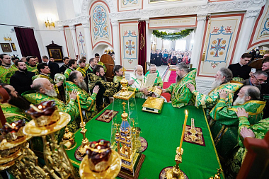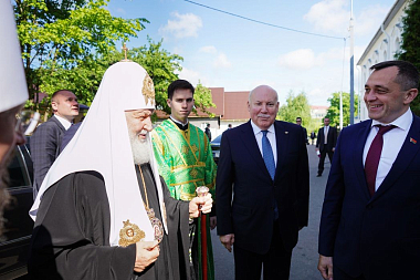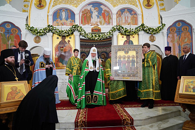 «Всех еще раз с праздником! Дорогие владыки, рад был вместе с вами молиться. Да укрепляет вас Господь. Желаю вам пребывать в единомыслии, трудиться, не жалея живота своего, во благо Церкви Божией и просвещения народа. Пусть Господь хранит вас на этом западном порубежье Святой Руси от всяких скорбей, испытаний и укрепляет вас в верности и благочестии. Еще раз всех вас приветствую и радуюсь возможности сегодня с вами совершить эту Божественную литургию!» — сказал в завершение Святейший Патриарх Кирилл.