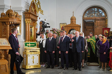 В храме присутствовали: уполномоченный по делам религий и национальностей Республики Беларусь А.А. Румак; государственный секретарь Союзного государства Д.Ф. Мезенцев; председатель Витебского областного исполнительного комитета А.М. Субботин; председатель Витебского областного Совета депутатов В.В. Терентьев; председатель Новополоцкого городского исполнительного комитета Д.В. Демидов; председатель Синодального отдела по взаимоотношениям Церкви с обществом и СМИ, временно исполняющий обязанности руководителя Пресс-службы Патриарха Московского и всея РусиВ.Р. Легойда; ректор Витебского государственного университета им. П. М. Машерова В.В. Богатырева; ректор Полоцкого государственного университета О.А. Романов.