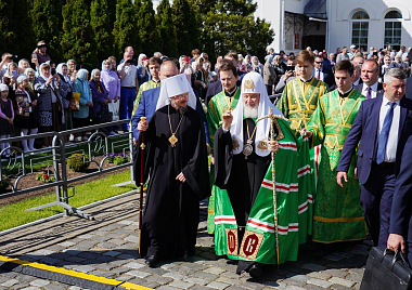 В Патриаршем богослужении приняли участие богомольцы, пришедшие крестным ходом из древнего Софийского собора г. Полоцка, где Божественную литургию совершил епископ Полоцкий и Глубокский Игнатий.