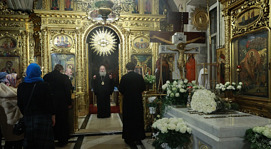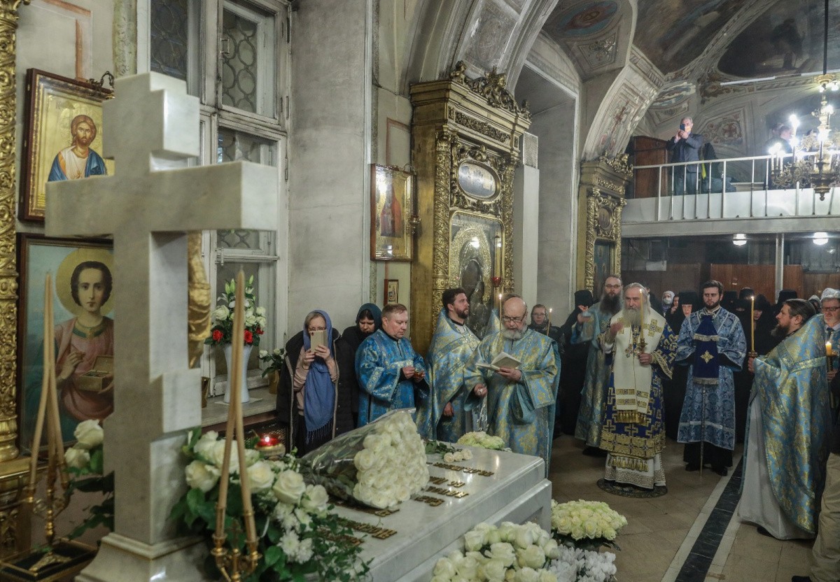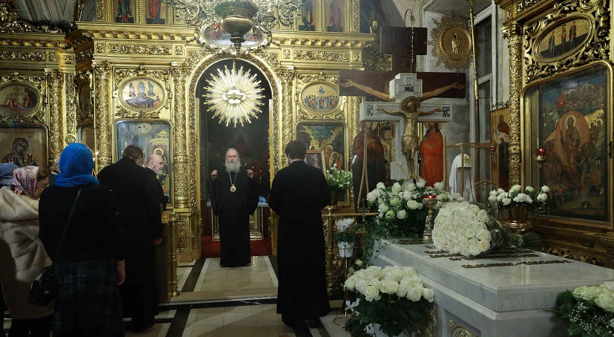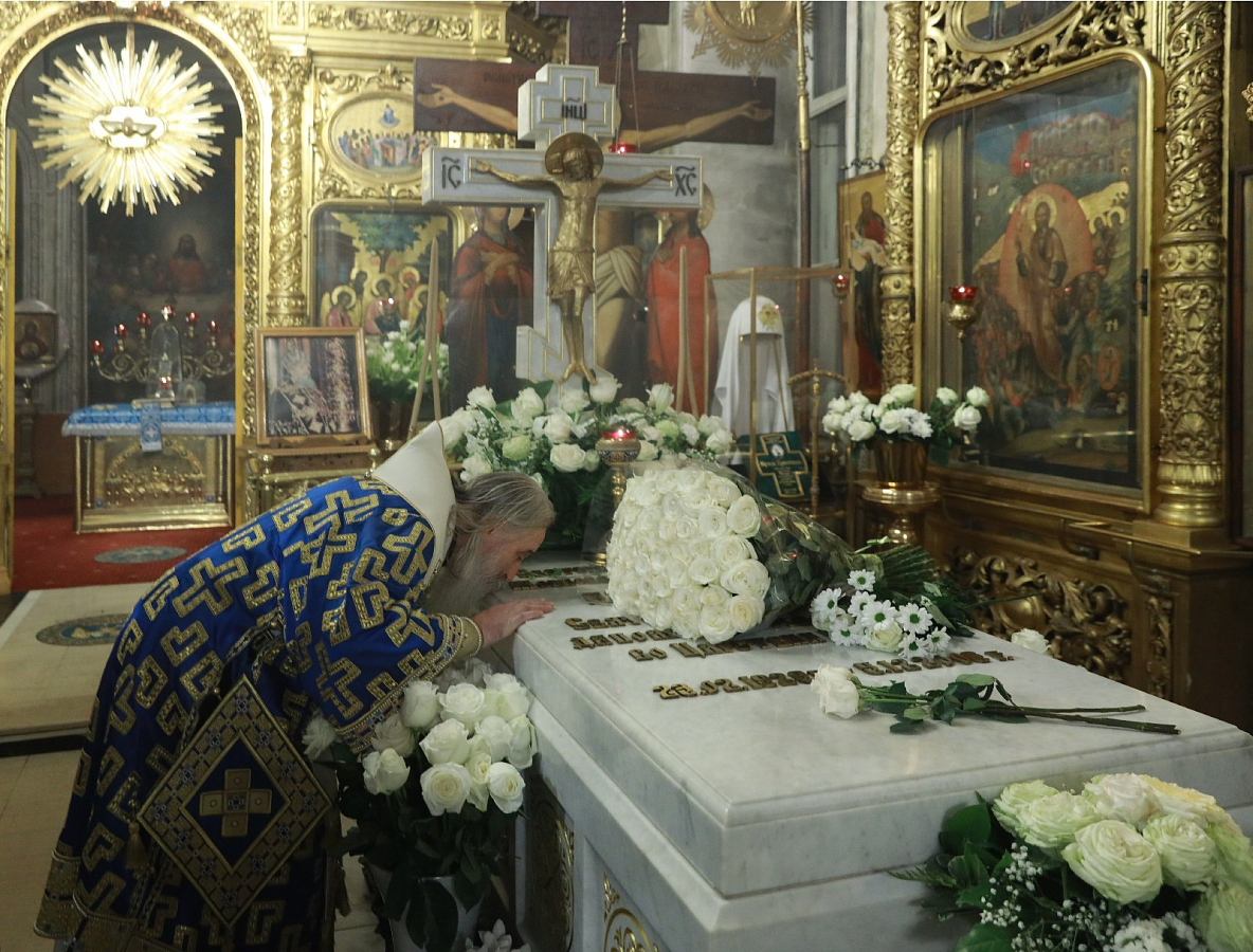 По окончании Литургии митрополит Феогност отслужил панихиду у места погребения Святейшего Патриарха Алексия II.