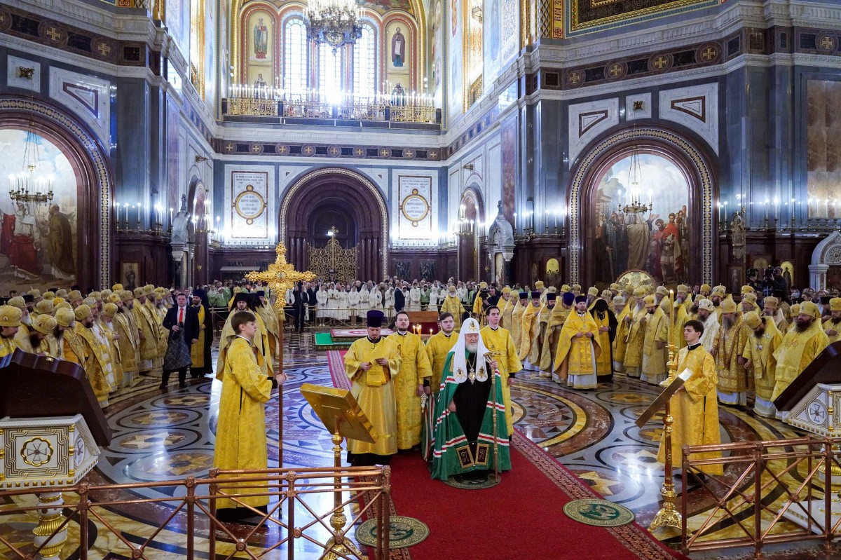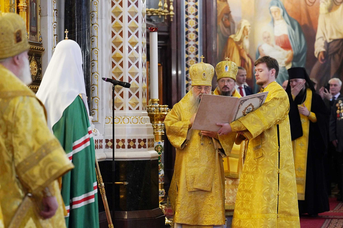 Его Святейшеству сослужили: постоянные члены Священного Синода Русской Православной Церкви — митрополит Санкт-Петербургский и Ладожский Варсонофий, Патриарший наместник Московской митрополии митрополит Крутицкий и Коломенский Павел, председатель Отдела внешних церковных связей Московского Патриархата митрополит Волоколамский Антоний, Патриарший экзарх всея Беларуси митрополит Минский и Заславский Вениамин; члены Священного Синода и Высшего Церковного Совета, сонм архиереев Русской Православной Церкви.