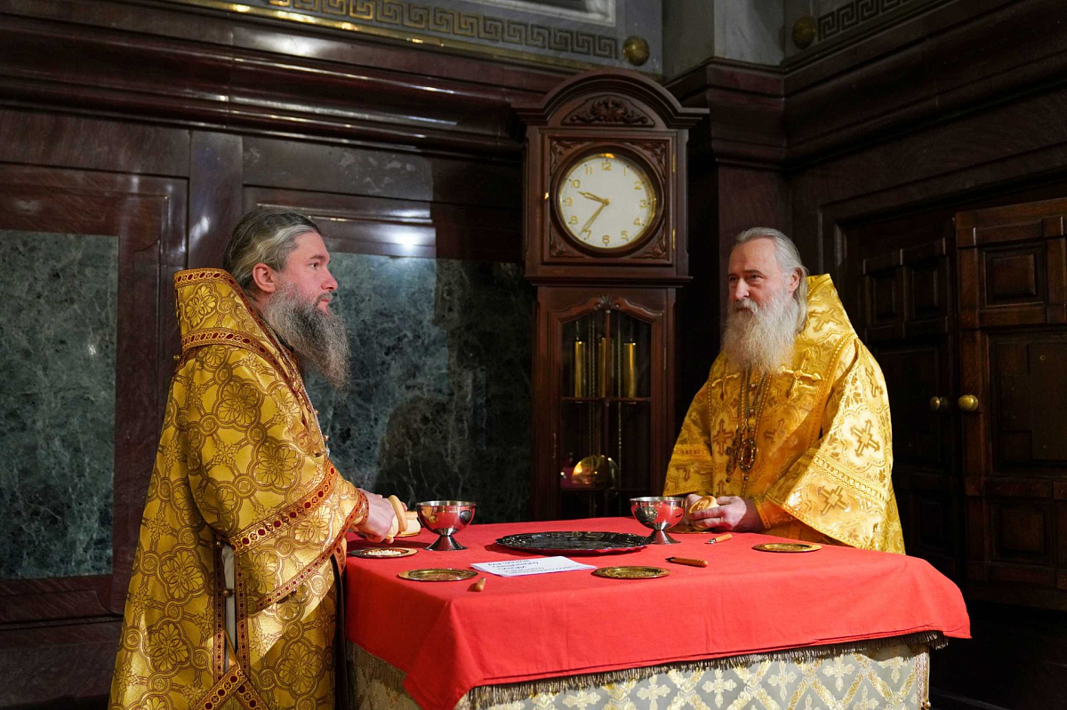 Проповедь перед причастием произнес архиепископ Подольский и Люберецкий Аксий.