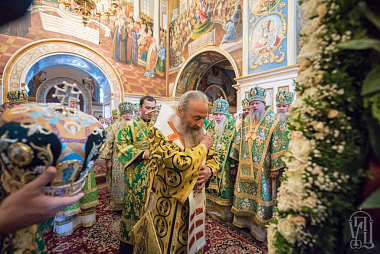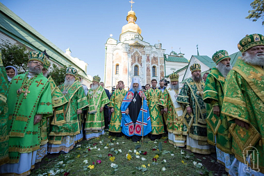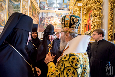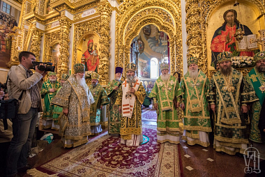 Его Блаженству сослужили митрополиты, архиепископы и епископы Украинской Православной Церкви – всего более 70 архиереев, архиепископ Берлинский и Германский Марк (Русская Православная Церковь Заграницей), а также гости в священном сане и духовенство обители.