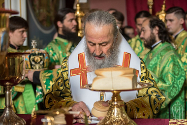 После чтения Святого Евангелия Предстоятель Украинской Православной Церкви обратился к пастве с проповедью. Блаженнейший владыка рассказал о житии своего небесного покровителя преподобного Онуфрия Великого и объяснил духовное значение подвига святых пустынножителей для мира.