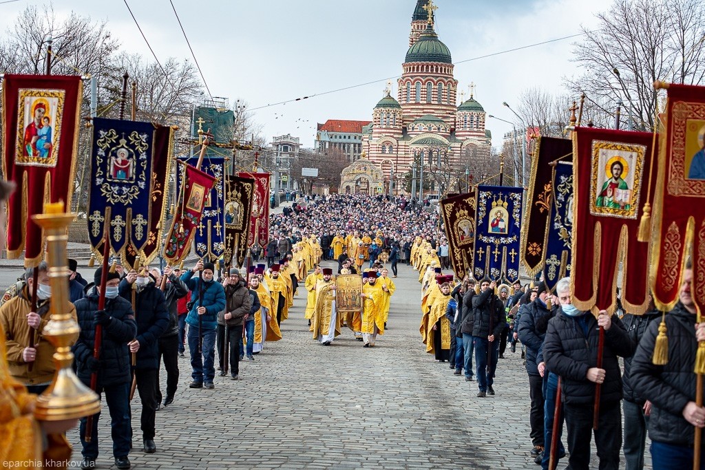 Один из самых массовых крестных ходов состоялся в Харькове. С крестом, хоругвями и чтимыми иконами духовенство и миряне во главе с митрополитом Харьковским и Богодуховским Онуфрием прошли от Благовещенского кафедрального собора к Покровскому мужскому монастырю. На монастырской площади был совершен молебен.
