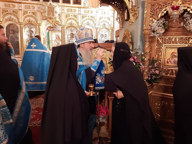 По возглашении уставных многолетий архимандрит Александр обратился с приветственным словом к молящимся, в котором поздравил игумению Екатерину (Чернышеву) и сестер обители с престольным торжеством монастыря.