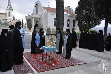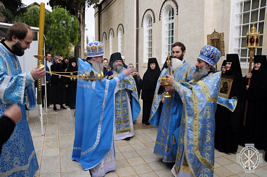Накануне вечером было совершено всенощное бдение, которое возглавил начальник Русской духовной миссии в Иерусалиме архимандрит Александр (Елисов) в сослужении духовенства РДМ.