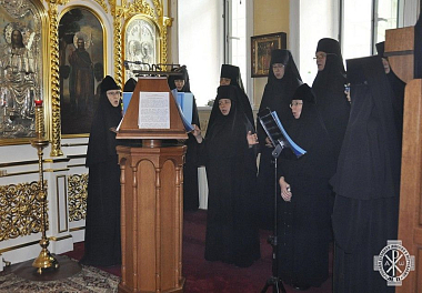 По возглашении уставных многолетий архимандрит Александр обратился с приветственным словом к молящимся в храме, в котором поздравил игумению Екатерину и сестер с престольным торжеством обители.