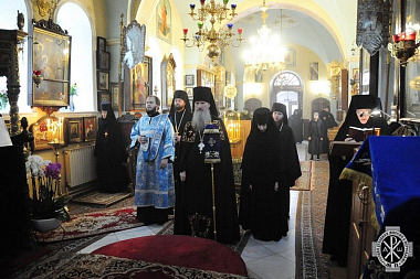 По окончании всенощного бдения игумения Екатерина (Чернышева) и сестры совершили чтение акафиста Божией Матери перед чудотворным образом, испрашивая Ее покровительства и державной помощи всем страждущим от морового поветрия коронавируса.