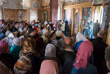 За богослужением молились сестры монастыря во главе с его настоятельницей игуменией Михаилой (Шевченко), а также несколько десятков верующих, прибывших в обитель.