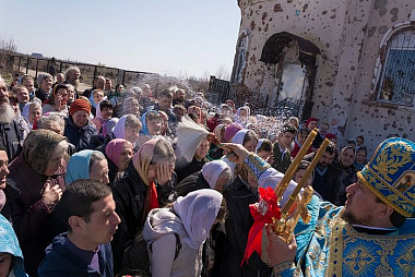В Иверском женском монастыре г. Донецка, разрушенном во время военных действий 2014–2015 гг., возобновляются регулярные богослужения. Об этом рассказали участники престольного праздника, состоявшегося в обители 10 апреля 2018 года.