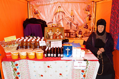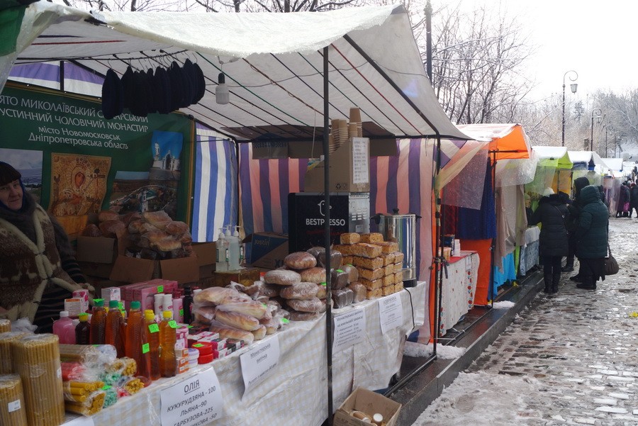 На выставке можно приобрести то, что производится в монастырских обителях УПЦ. В ассортименте церковная утварь и предметы, иконы, духовная литература, хлебобулочные изделия, лечебные травяные сборы, монастырские чаи, мед разных сортов и продукты пчеловодства, восковые свечи. С 15 февраля верующие смогут приобрести сретенские свечи, освященные на праздничной Божественной литургии.
