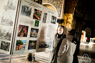 В продолжение научного форума 8 февраля в Трапезной палате храма Антония и Феодосия Печерских состоялось открытие выставки, которая проходит под тем же названием, что и состоявшаяся конференция: «Церковь мучеников: гонения на веру и Церковь в ХХ веке».