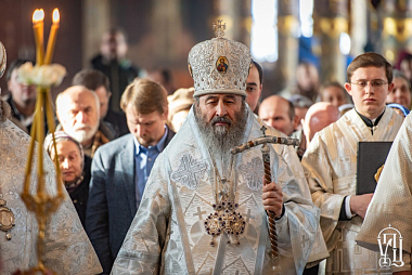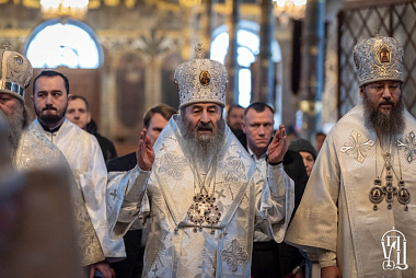 Его Блаженству сослужили наместник обители митрополит Вышгородский и Чернобыльский Павел, управляющий делами УПЦ митрополит Бориспольский и Броварской Антоний, архиепископ Бучанский Пантелеимон и духовенство обители.