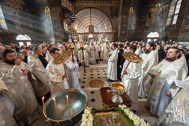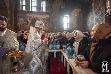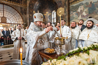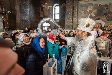 По окончании Литургии Блаженнейший митрополит Онуфрий совершил в храме чин великого освящения воды и окропил всех присутствовавших большой агиасмой под пение тропаря празднику Богоявления.