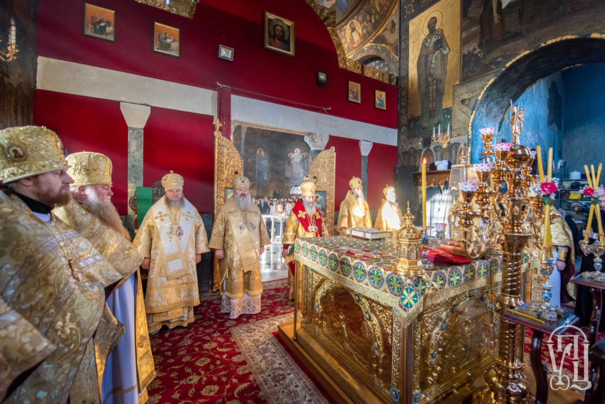 Предстоятелю Украинской Православной Церкви сослужили наместник монастыря митрополит Вышгородский и Чернобыльский Павел, митрополит Новокаховский и Генический Филарет, архиепископ Бучанский Пантелеимон, епископ Бородянский Марк, духовенство Лавры.