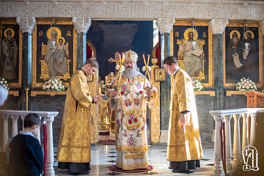 Накануне Блаженнейший архипастырь возглавил всенощное бдение в этом же храме.
