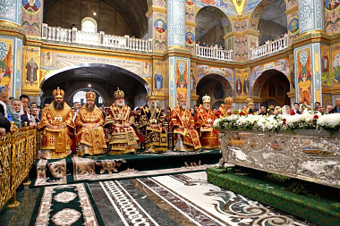 Завершились торжественные празднования крестным ходом, во время которого мощи игумена Почаевского были перенесены в Пещерный храм, где они постоянно пребывают.