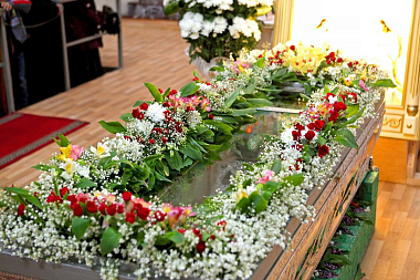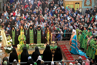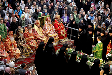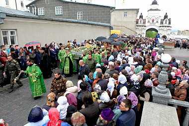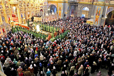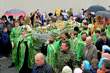 По окончании богослужения раку с мощами святого Амфилохия крестным ходом перенесли в пещерный храм – место их постоянного пребывания. Вместе с иерархами и священнослужителями святыню провожали тысячи верующих – паломников и прихожан.