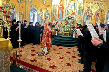 В этот день торжественную Литургию в Преображенском соборе обители, как и всенощное бдение накануне, возглавил митрополит Хустский и Виноградовский Марк.