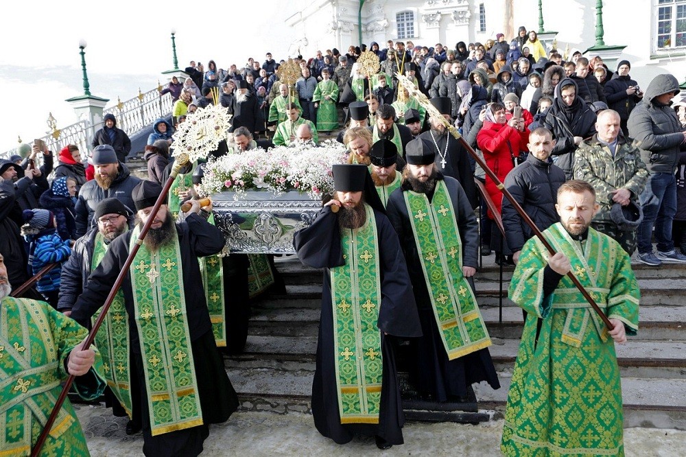 По завершении поздней Литургии святые мощи были перенесены в Пещерный храм на место постоянного пребывания.