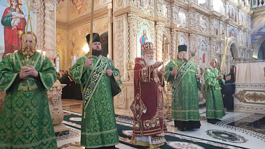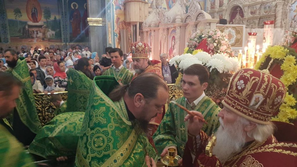 Его Высокопреосвященству сослужили митрополит Николаевский и Очаковский Питирим, митрополит Винницкий и Барский Симеон, митрополит Могилев-Подольский и Шаргородский Агапит, митрополит Почаевский Владимир, архиепископ Бучанский Пантелеимон, архиепископ Ровеньковский и Свердловский Пантелеимон, архиепископ Конотопский и Глуховский Роман, епископ Золотоношский Иоанн, а также духовенство монастыря и гости в священном сане.
