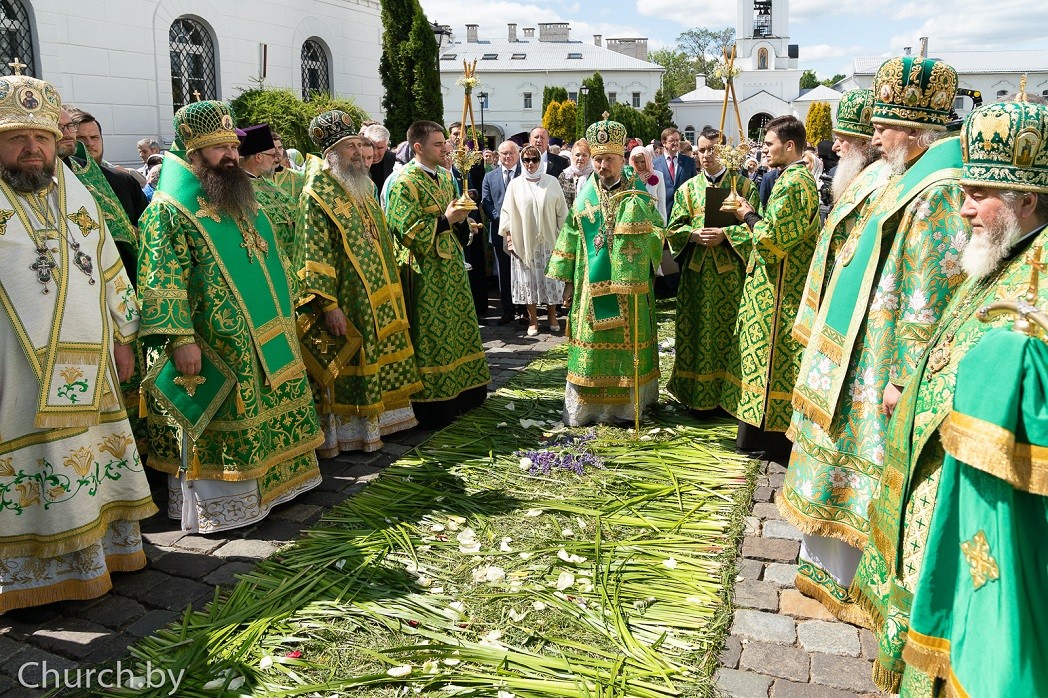 За поздней Божественной литургией в Крестовоздвиженском соборе обители Предстоятелю Белорусской Православной Церкви сослужили архиепископ Витебский и Оршанский Димитрий, архиепископ Феодосий (Бильченко), архиепископ Гомельский и Жлобинский Стефан, архиепископ Гродненский и Волковысский Антоний, епископ Туровский и Мозырский Леонид, епископ Молодечненский и Столбцовский Павел, епископ Светлогорский Амвросий, прибывшие на праздник гости в священном сане, духовенство Полоцкой епархии и клирики Спасо-Евфросиниевского монастыря.