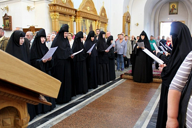 Церковные песнопения исполнили два хора сестер обители под управлением монахини Февронии (Бармичевой) и инокини Анны (Крикет).