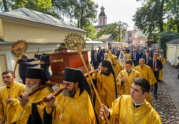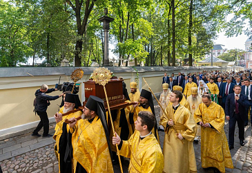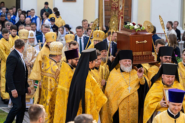 Под перезвон колоколов ковчег с мощами благоверного великого князя Александра Невского был перенесен в Благовещенский храм Александро-Невской лавры.
