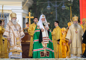 Святейший Патриарх Кирилл обратился к собравшимся на площади Александра Невского с Первосвятительским словом.