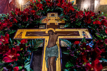По завершении Литургии было совершено поклонение Честному и Животворящему Кресту Господню.