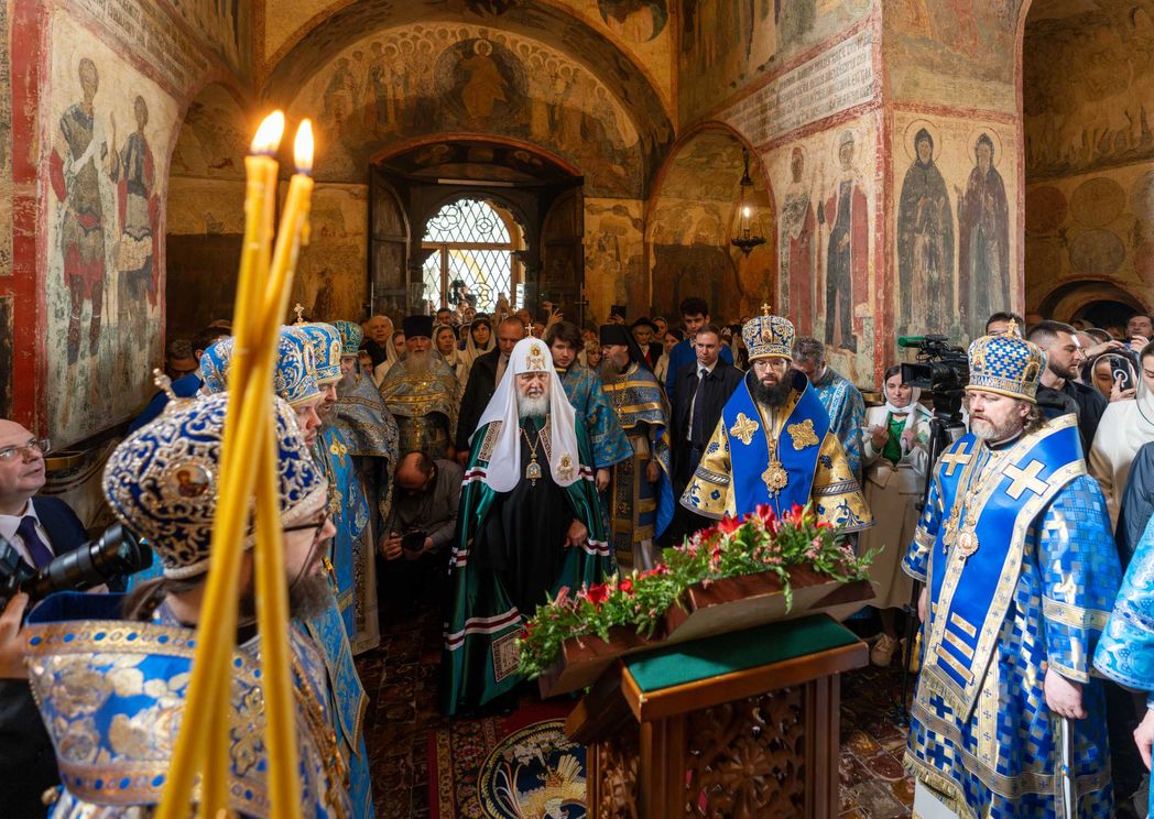 7 апреля 2024 года, в неделю 3-ю Великого поста, Крестопоклонную, праздник Благовещения Пресвятой Богородицы, день преставления святителя Тихона, Патриарха Московского и всея России (1925), Святейший Патриарх Московский и всея Руси Кирилл совершил Божественную литургию святителя Василия Великого в Благовещенском соборе Московского Кремля.