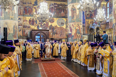 На сугубой ектении были вознесены особые прошения о ныне тезоименитом Президенте России Владимире Владимировиче Путине.