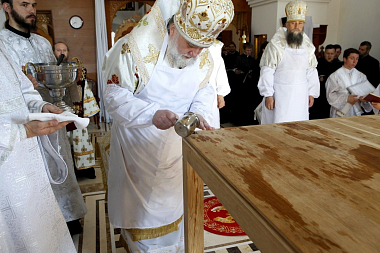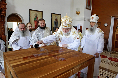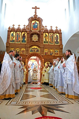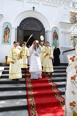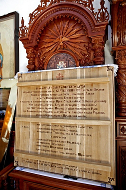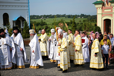 Большой чин освящения храма и праздничную Божественную литургию возглавил митрополит Тернопольский и Кременецкий Сергий в сослужении наместника Свято-Успенской Почаевской лавры митрополита Почаевского Владимира, ректора Почаевской духовной семинарии епископа Шумского Иова, скитоначальника Свято-Духовского скита архимандрита Пафнутия (Целика), братии и гостей обители в священном сане.